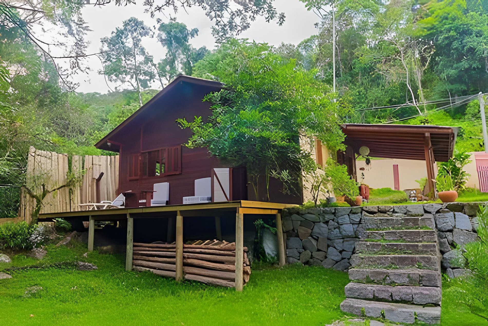 - Fogão e gramado com espaço para fogueira;
