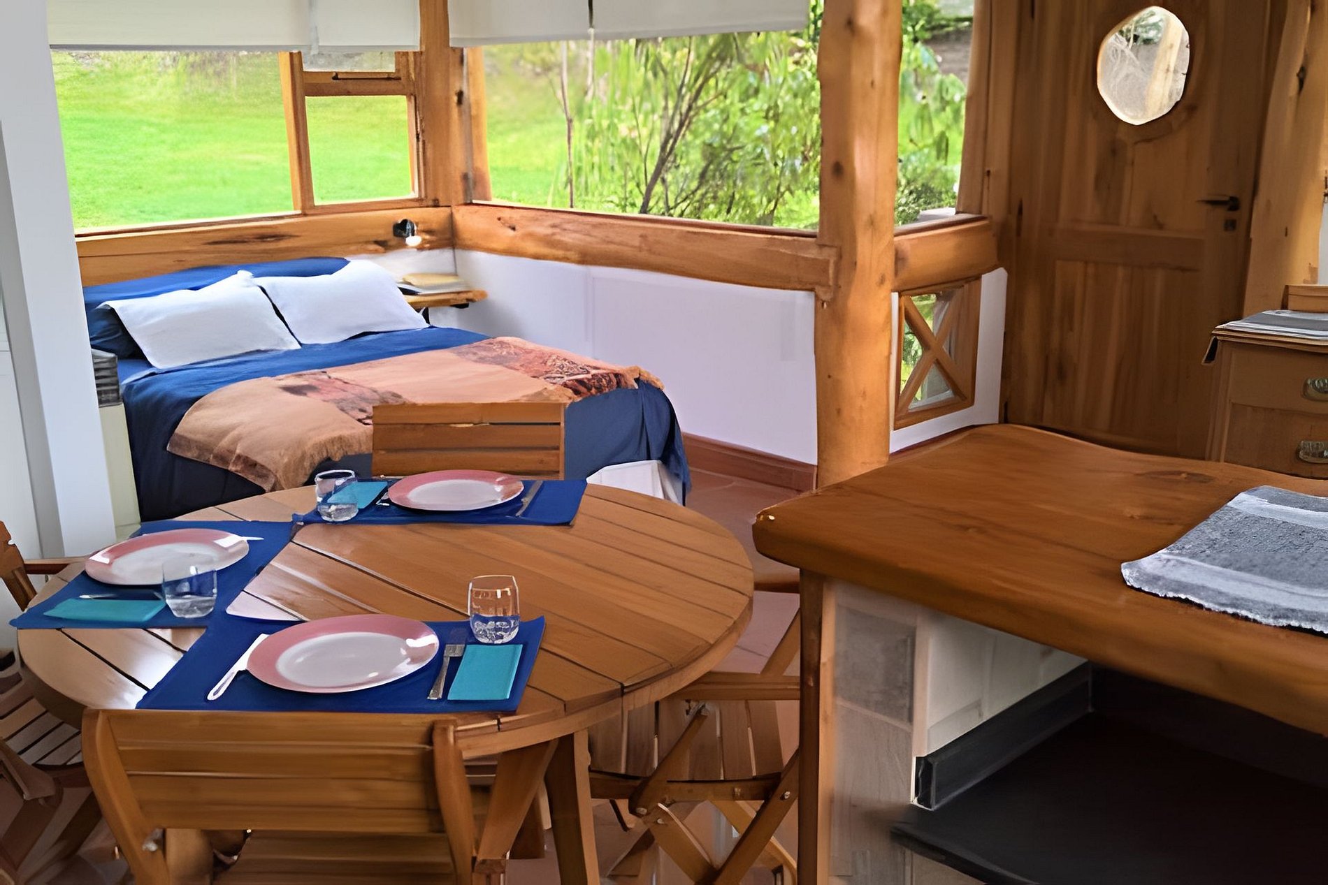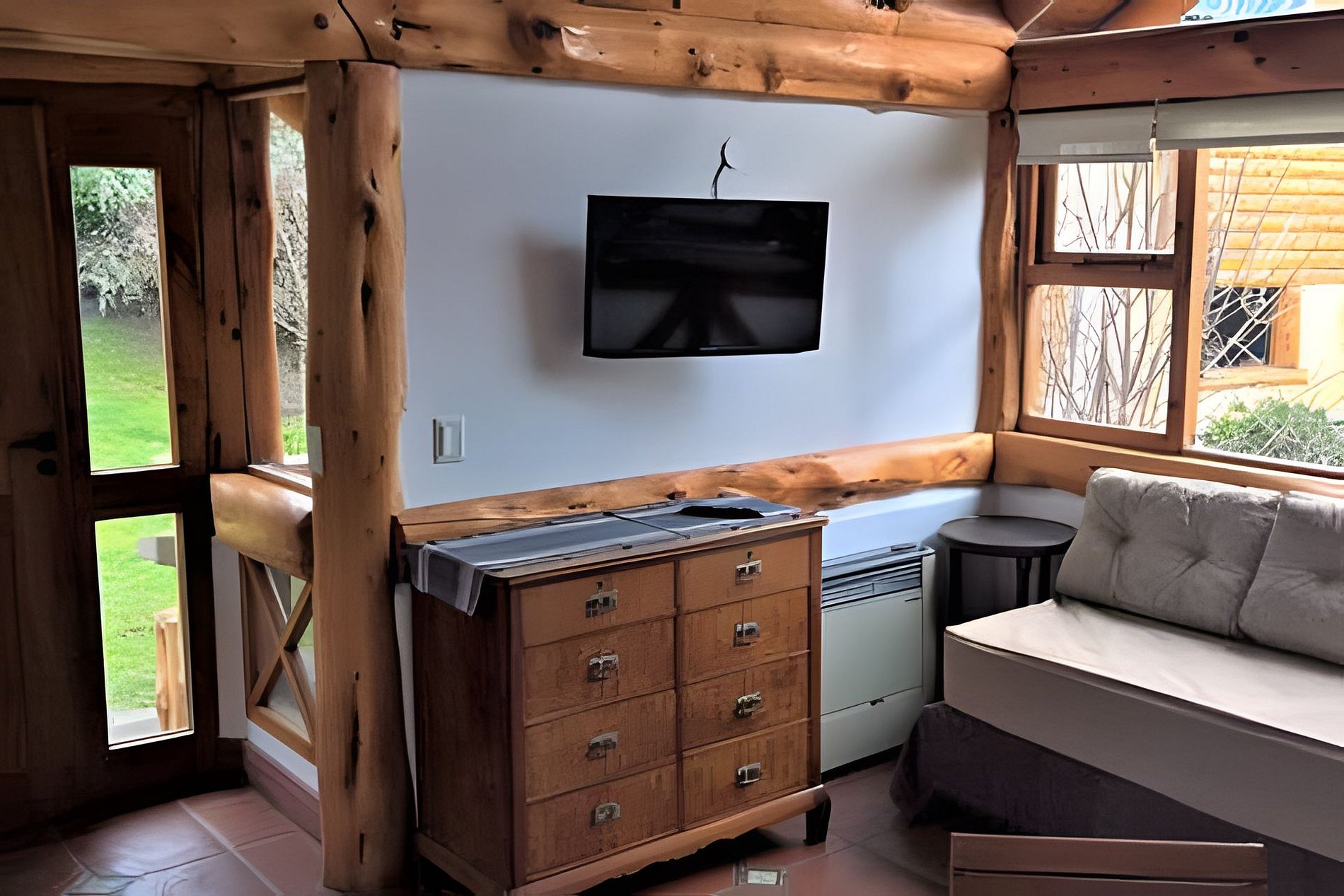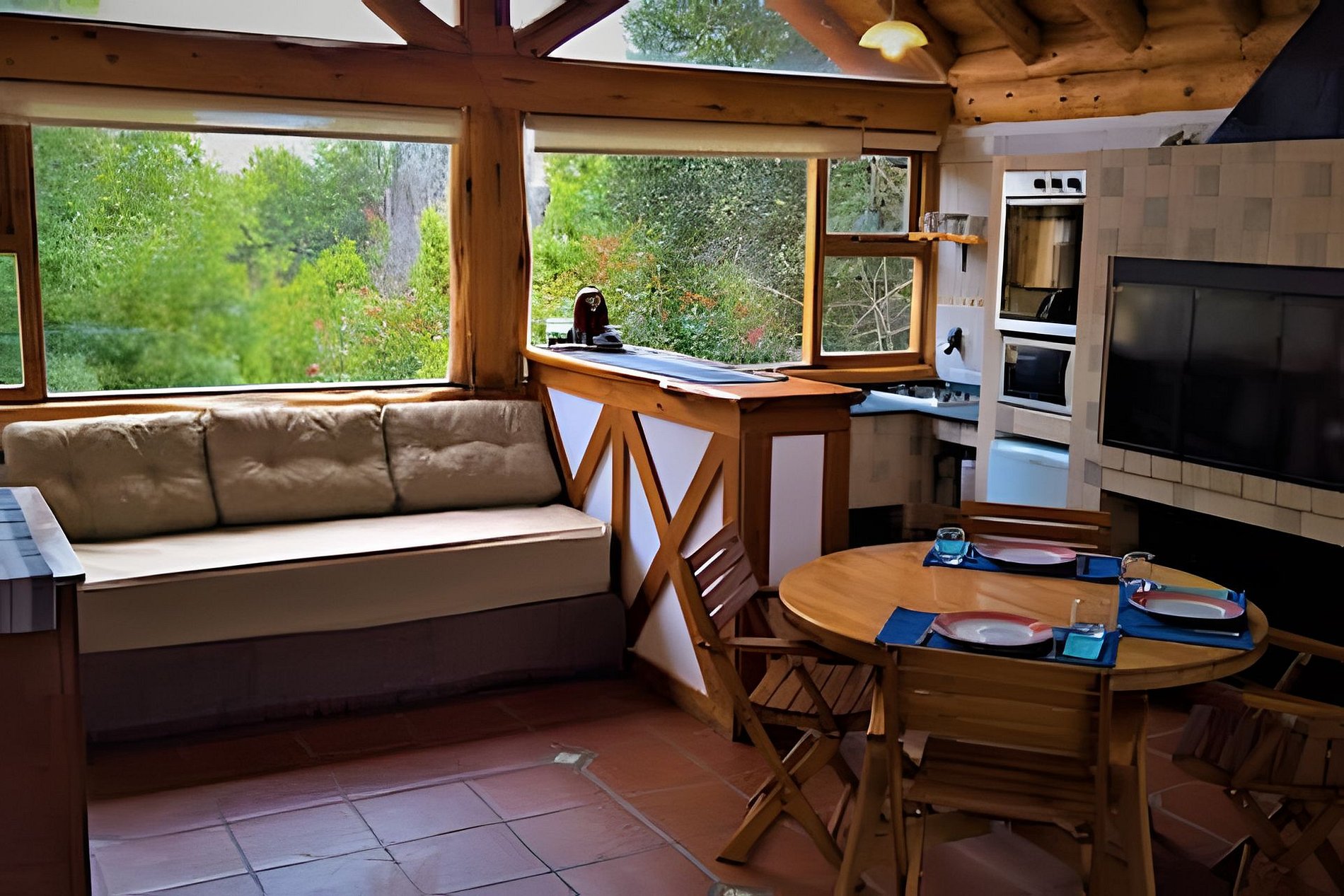O local oferece dois calefatores a gás e recursos de segurança, como detector de monóxido, extintor e luz de emergência. Situada em um jardim verde rodeado por árvores típicas da Patagônia, como Radales e Ciprestes, a cabana tem acesso remoto e estacionamento próximo.