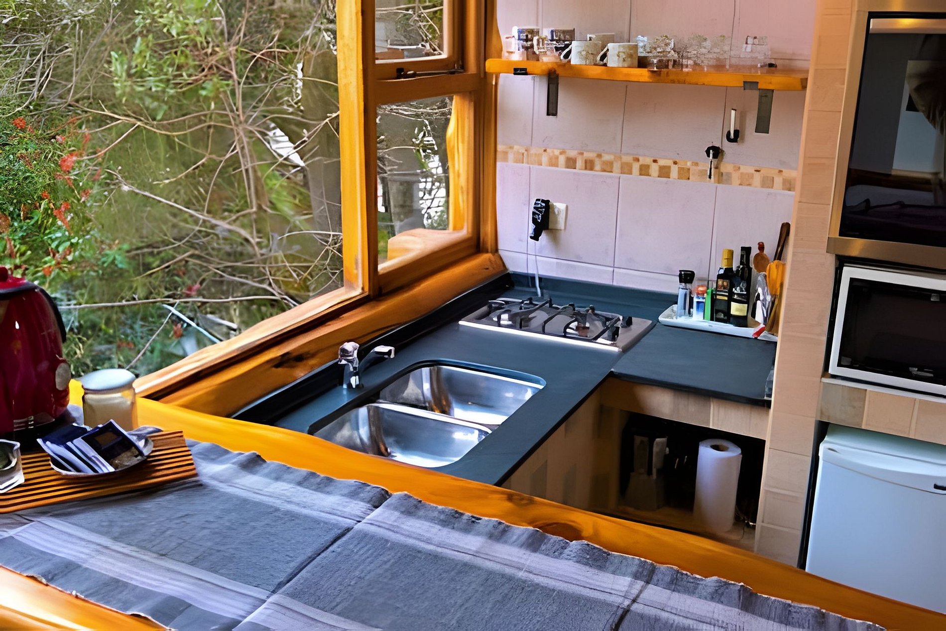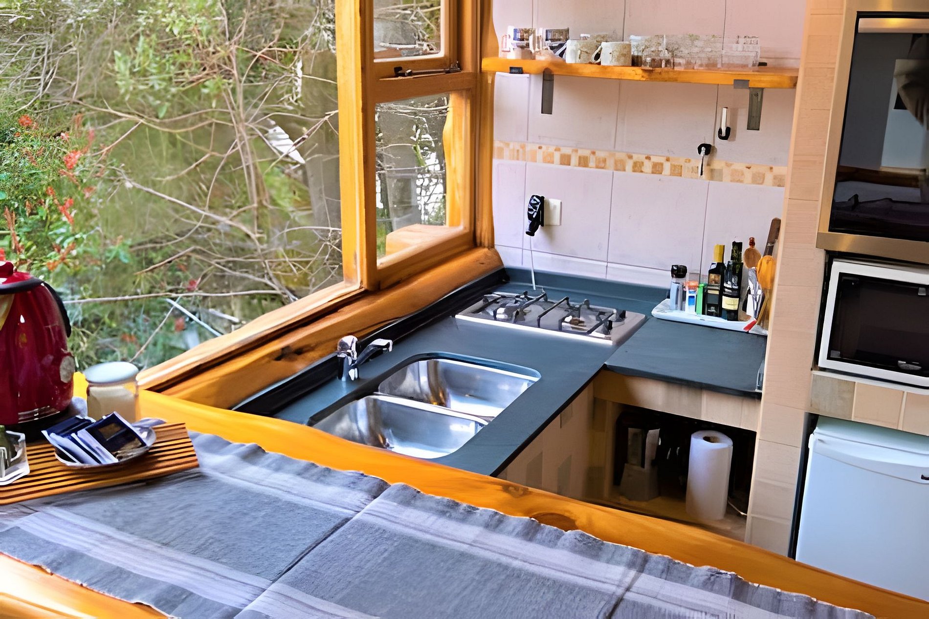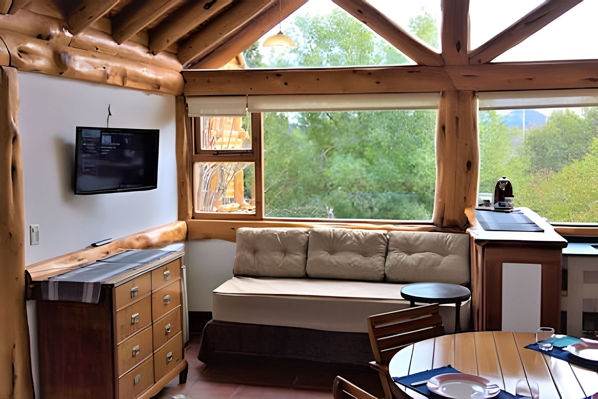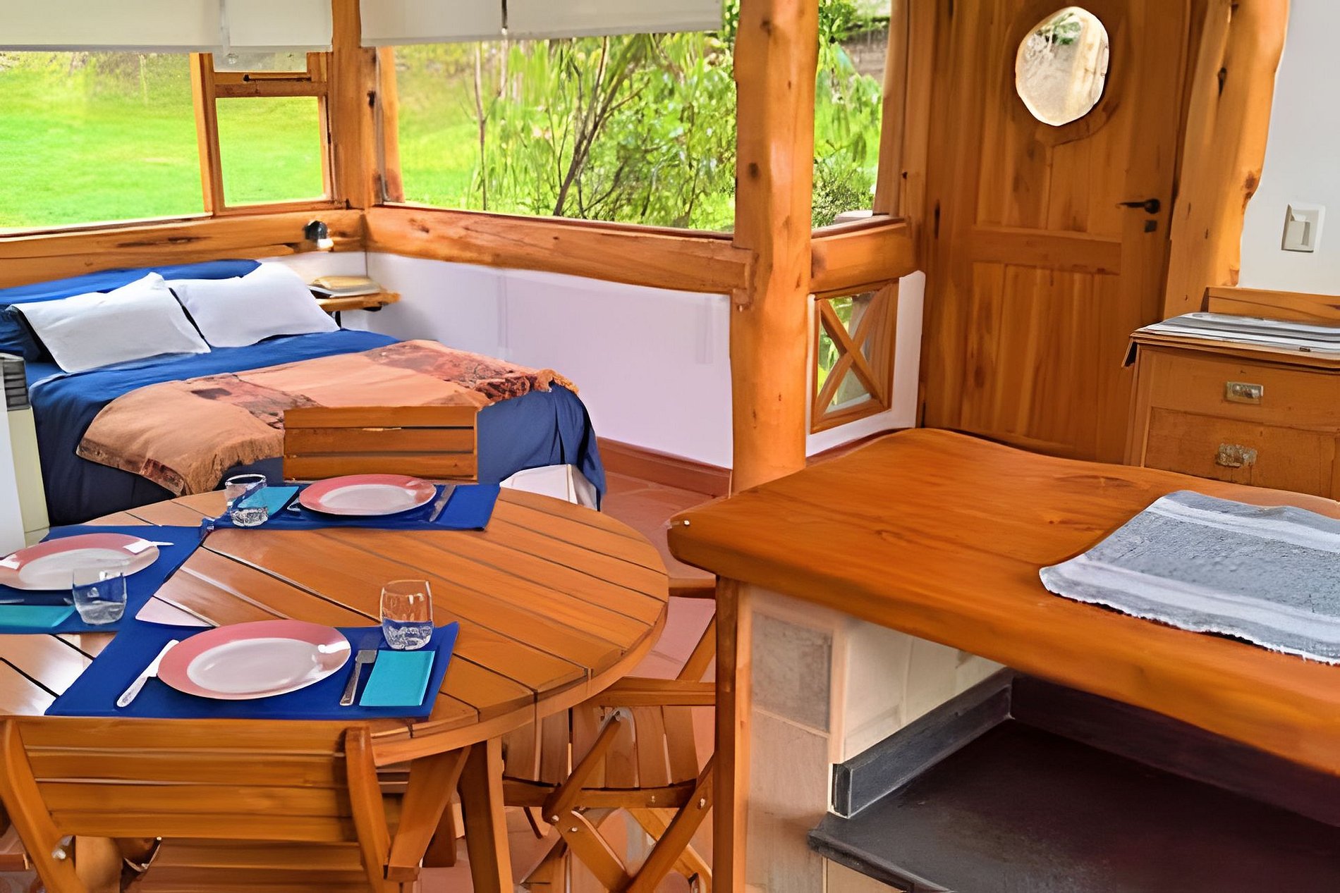 O local oferece dois calefatores a gás e recursos de segurança, como detector de monóxido, extintor e luz de emergência. Situada em um jardim verde rodeado por árvores típicas da Patagônia, como Radales e Ciprestes, a cabana tem acesso remoto e estacionamento próximo.