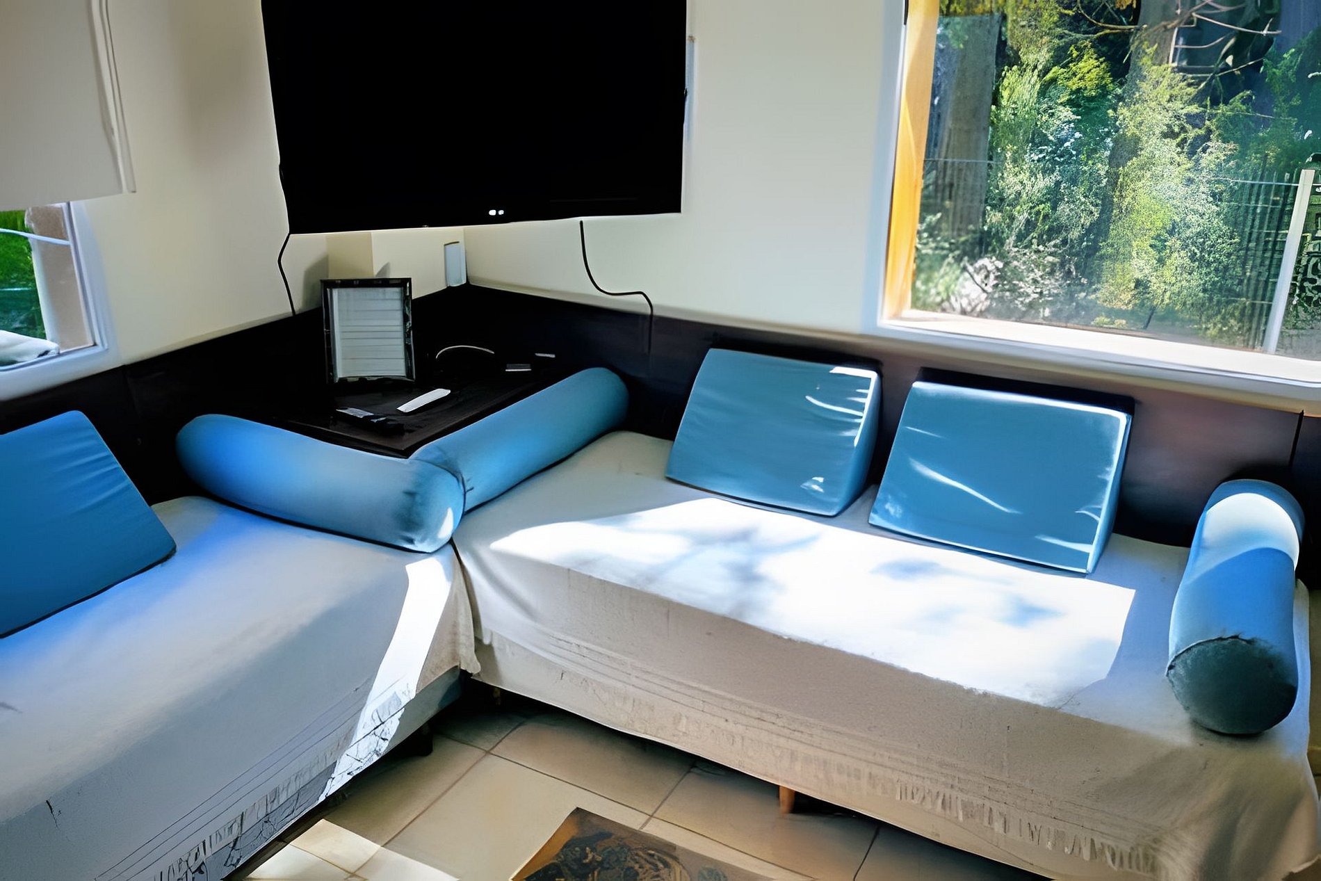 • 1 cama de casal + 4 camas de solteiro (ou 2 camas de casal e 2 camas de solteiro)